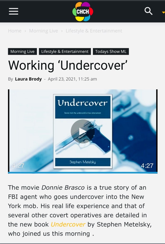 “Metelsky has written a chilling new book that chronicles some of the most harrowing police undercover operations in Canadian and U.S. history. Entitled Undercover: Stories from the Underworld of Law Enforcement, Metelsky interviews some of the most legendary investigators who are pulling back the curtain on the dark side. A great read.”
